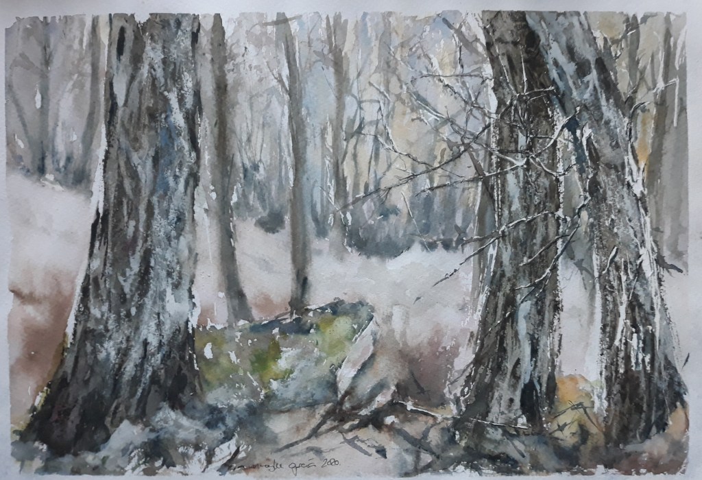 REFLEJOS EN CALMA. Acuarela 56 x 38 cmVIAJANDO POR TIERRAS INHÓSPITAS. Acuarela 5638 cmSILENCIO ÁRTICO. Acuarela 75 x 55 cm. Obra PREMIADA para el calendario AEDA 2026VIAJANDO POR LA SERRANÍA DE CUENCA. Acuarela 54 x 25 cmVIAJANDO POR EL ÁRTICO. Acuarela 75 x 55 cm. POR LOS CAMINOS DE OTOÑO. Acuarela 56 x 38 cmDE OTOÑO A INVIERNO . Acuarela 75 x 55 cm.OTOÑO EN IRATI. Acuarela 56 x 38 cm. Técnica mixta. PARQIUE DE LA FUENTE DEL BERRO II. Acuarela 40 x 25 cm.ESAS MONTAÑAS NEVADAS. Acuarela 56 x 38 cmINVIERNO II. Acuarela 50 x 35 cmDIA DE TORMENTA. Acuarela 56 x 38 cm.CRUZAMOS EL RÍO. Acuarela 56 x 38 cmDESDE LA ISLA . Acuarela 36 x 25 cm.EL PASO DE LA LAGUNA DEL REY. Acuarela. 57 x 37 cm.NIEBLAS AL AMANECER. RUIDERA. Acuarela 56 x 38 cmÁRBOLES DEL RÍO TOROTE. Acuarela 50 x 36 cm.DESHIELO EN EL POLO. Acuarela 50 x 36 cm.SALTOS DE AGUA EN LAS LAGUNAS. Acuarela 57 x 38 cmCONTRALUZ AL ATARDECER. Acuarela. 50 X 35 CMBARRO EN EL RÍO TOROTE – Acuarela 77 x 57 cmNIEVE EN EL DESIERTO – Acuarela 40 x 27 cmÁRBOL SECO – Acuarela 44 x 37 cmPASEO DEL JARDÍN – Acuarela 35 x 25 cmENTRADA AL JARDÍN – Acuarela 38 x 28,5 cm-LA FUENTE I – Acuarela 46 x 38 cm.BOSQUE DE RIVERA – Acuarela 45,5 x 38 cmÁRBOL SECO – Acuarela 44 x 37,5 cm