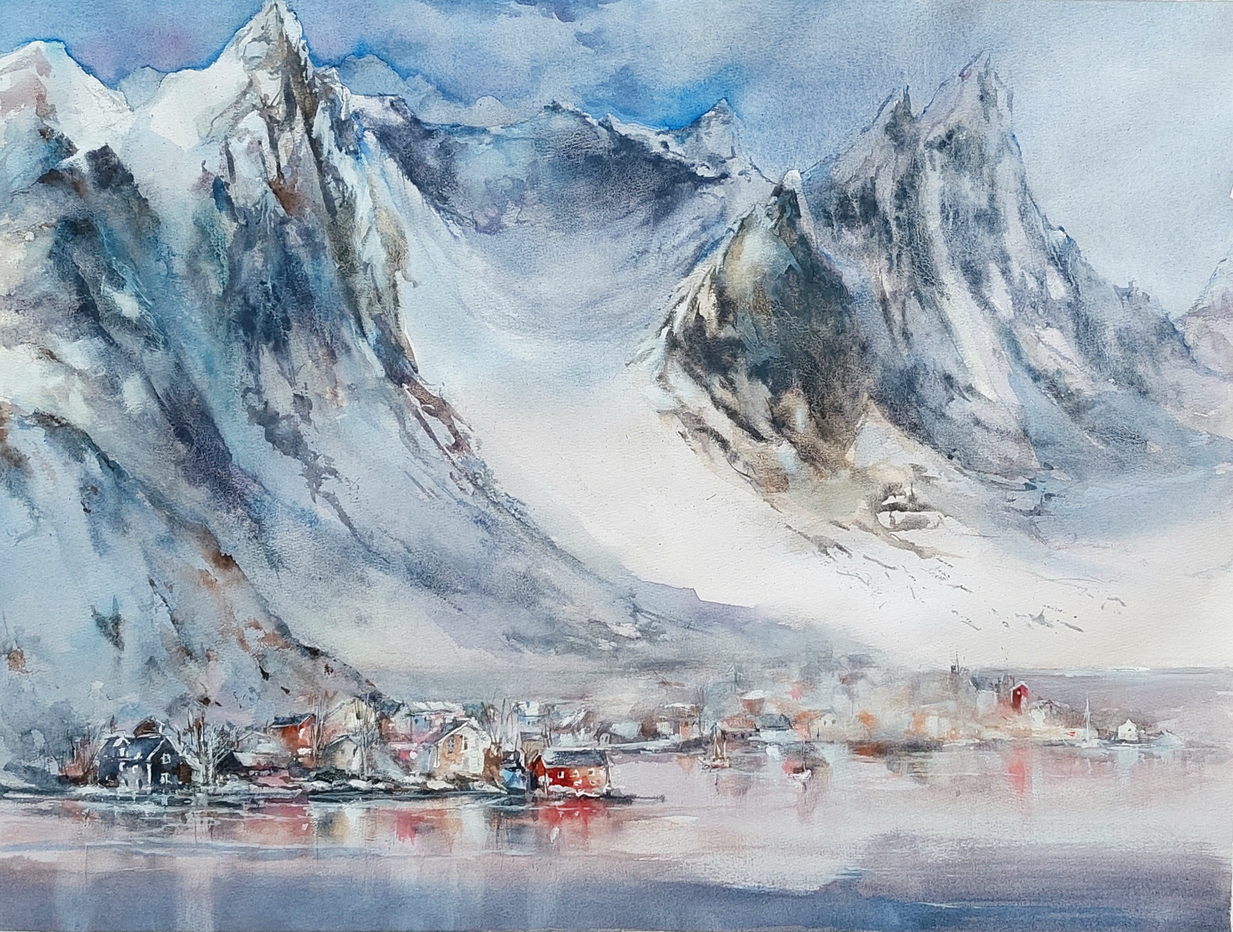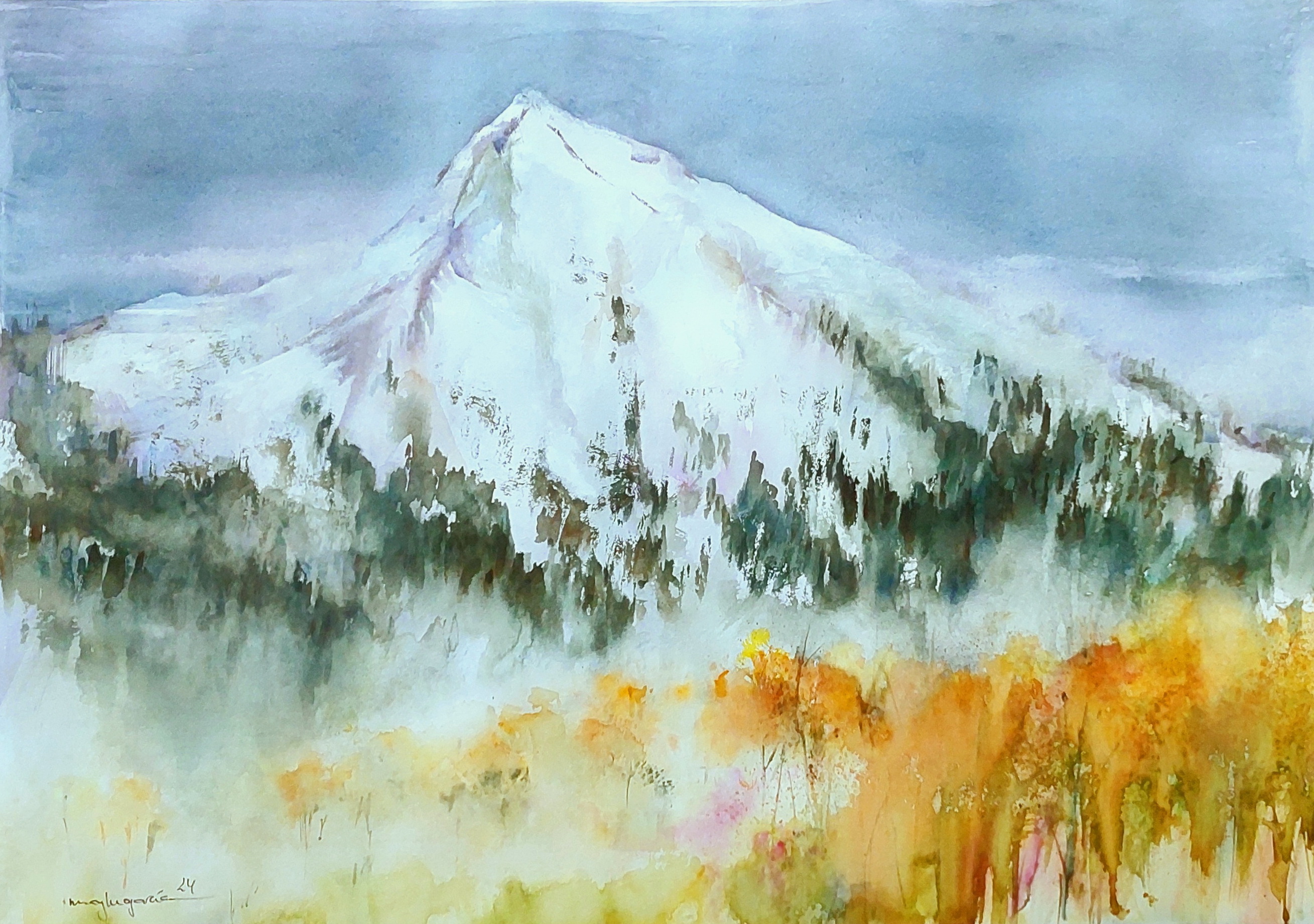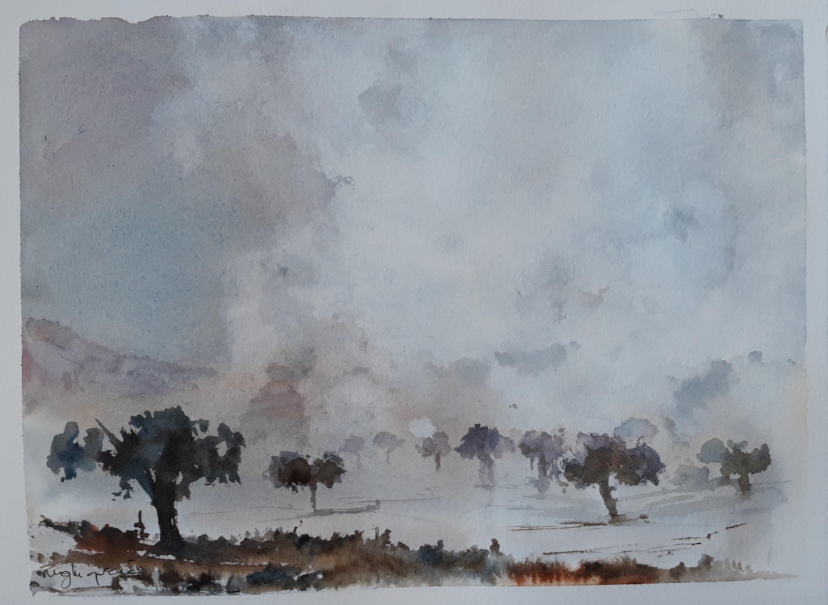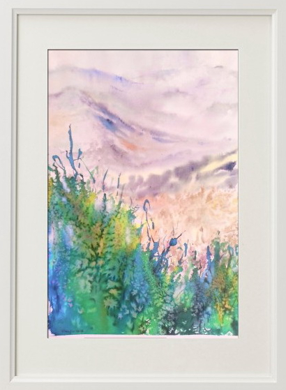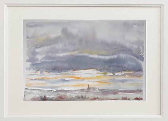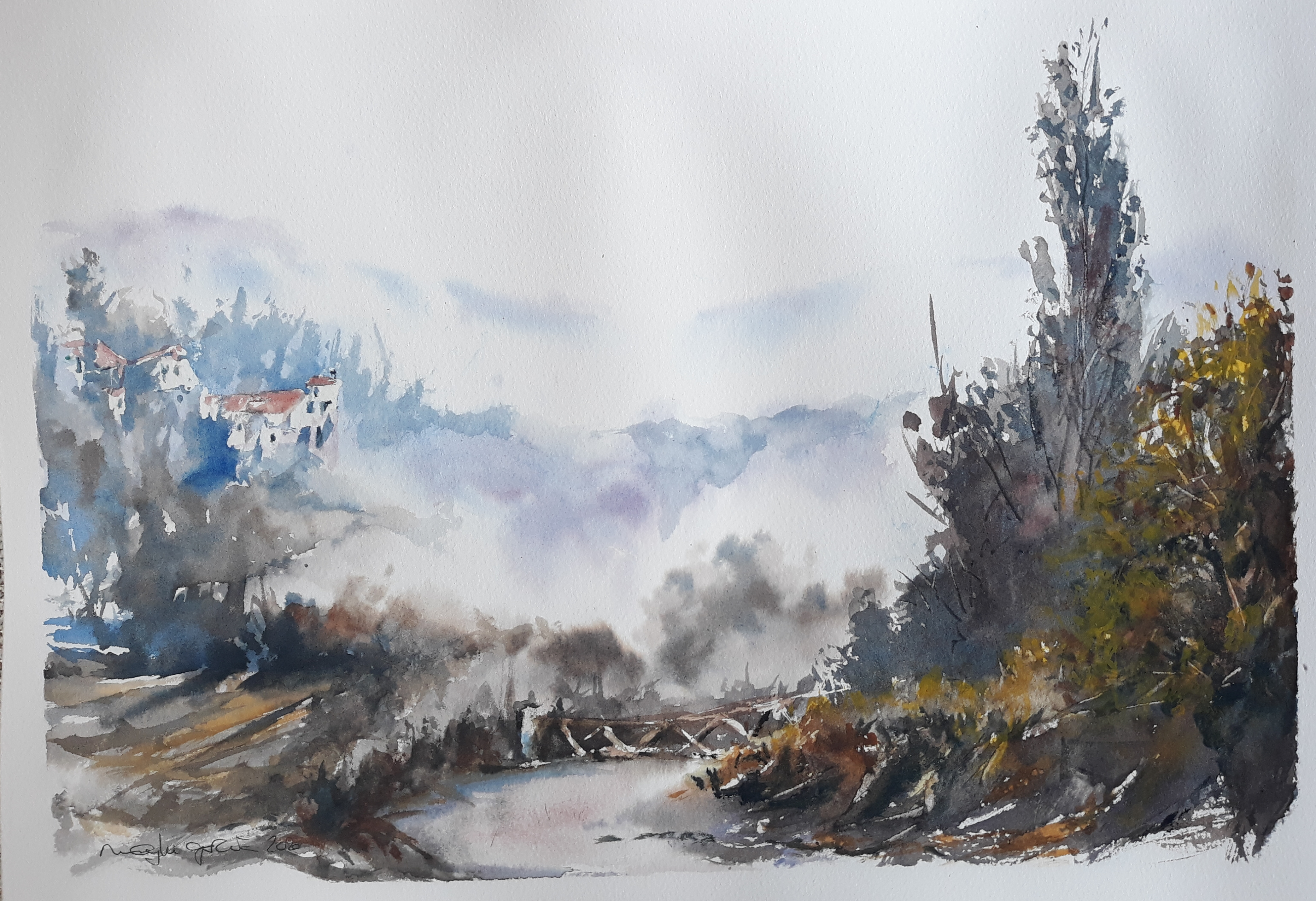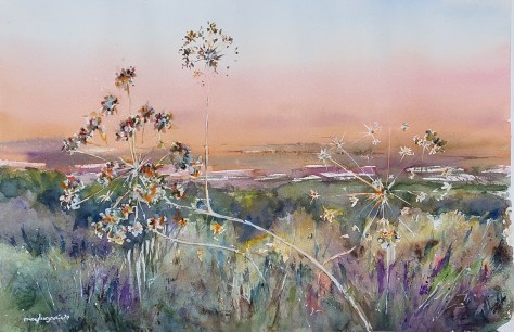 SERRACINES AL AMANECER. Acuarela 57 x 34 cm.